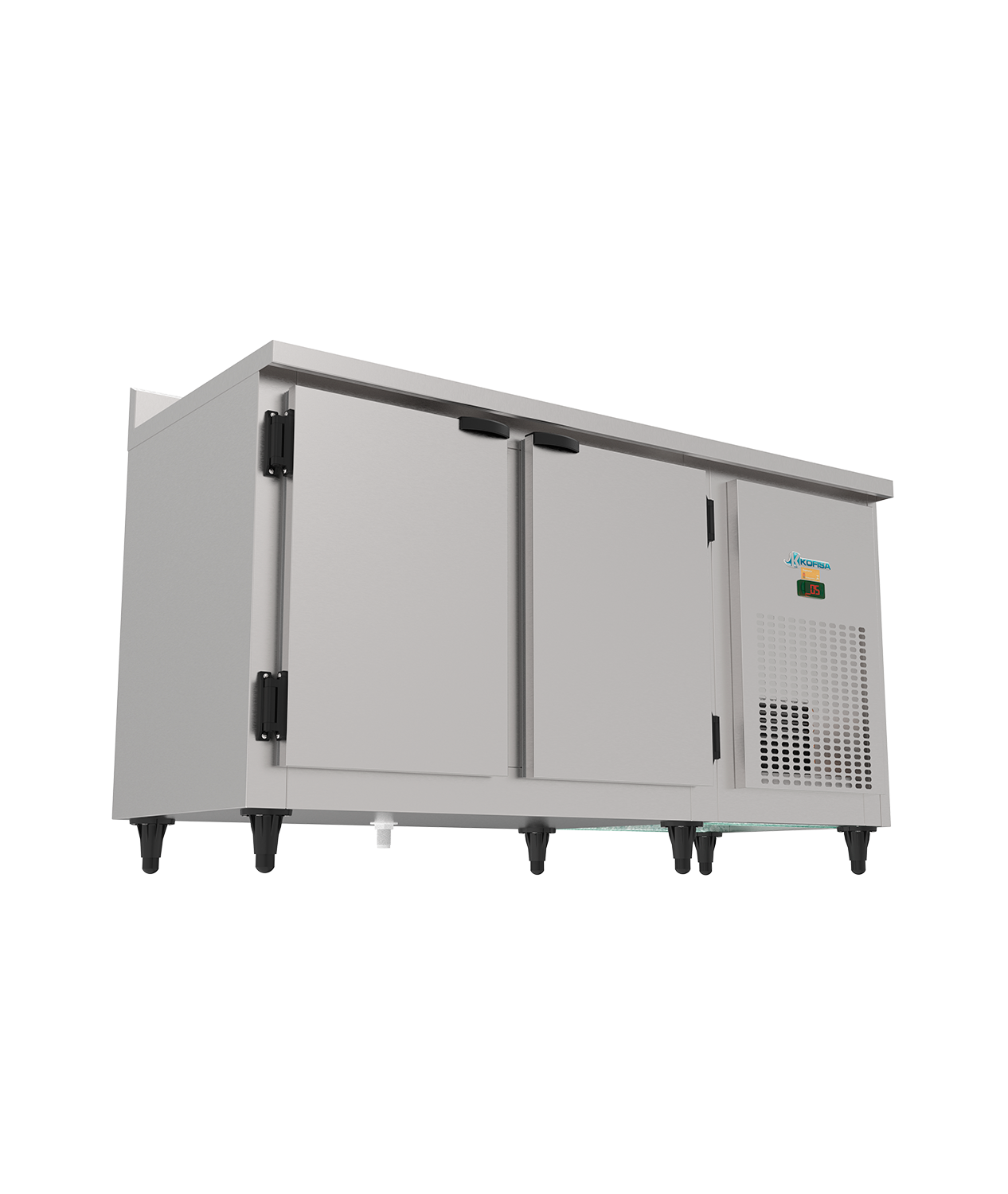 O Balcão de Serviço inox Ar Forçado Linha Professionale 2 Portas Sem Pia KBSC 150 D 220 V Kofisa é a escolha perfeita para estabelecimentos que precisam de uma solução profissional de refrigeração com grande capacidade e robustez.
