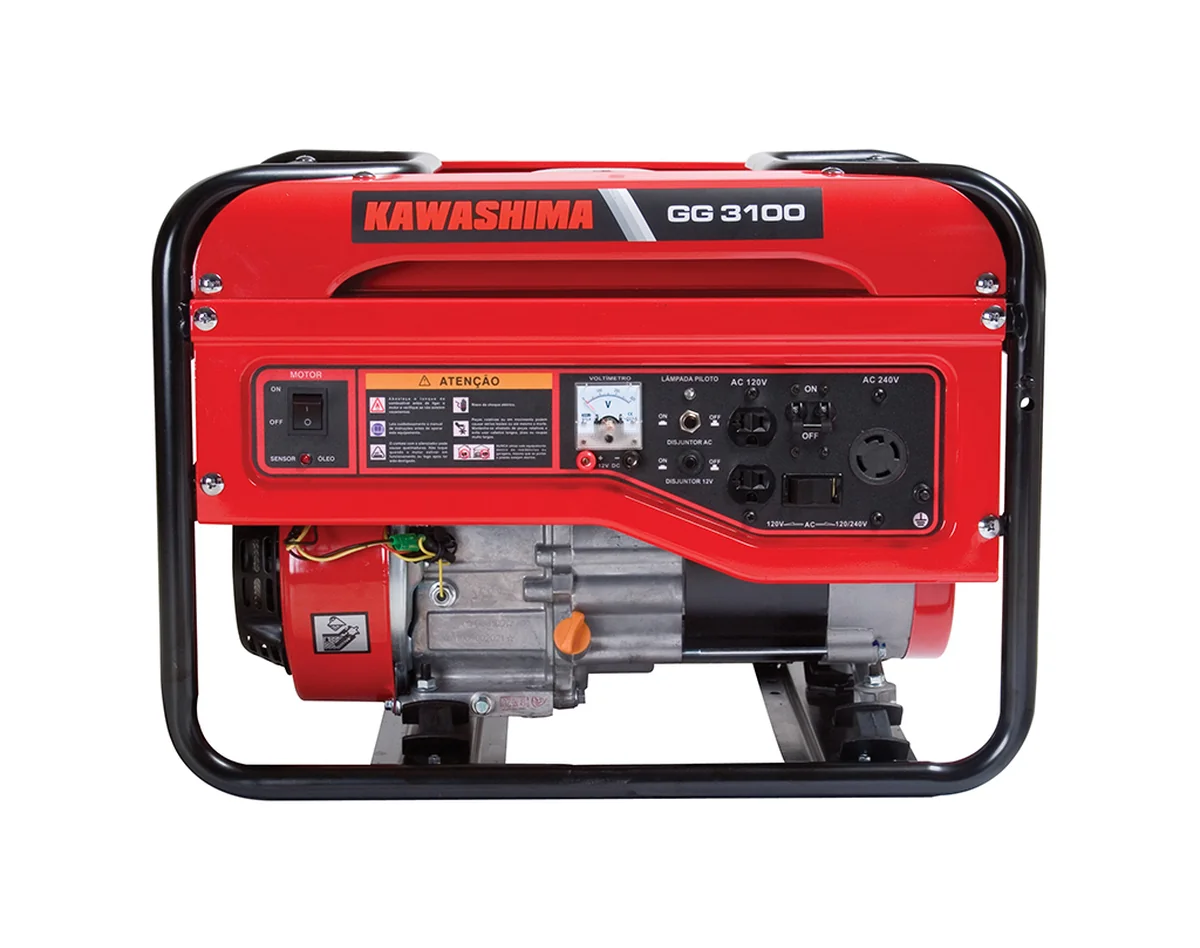 Gerador Monofásico Bivolt 3100 W / 3,1 kVA Monofásico Bivolt 120/240 V com AVR 5600420 Kawashima, a opção de melhor custo beneficio do mercado, pra você que não quer mais passar sufoco, principalmente em época de tempestades, no campo, na cidade, no comércio ou na sua residência, conte com os Geradores Kawashima, temos os modelos de grande porte sob consulta.