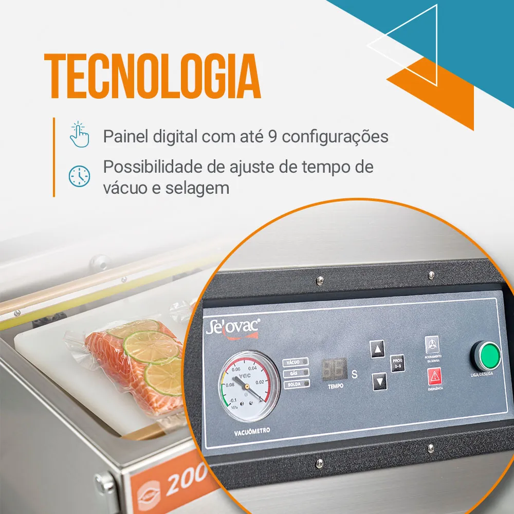 - Alta eficiência de vácuo, garantindo a qualidade da embalagem